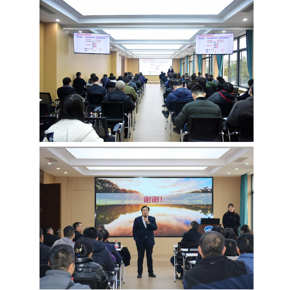 谢和平院士以《如何立志/实现创新创造》为题,以习近平总书记重要讲话精神和党的二十大报告为指引,以“真正一流体现在哪”为切入点,围绕如何立志/学会创新创造、创新创造是平凡中的发现、创新创造是想象中的思考、好学生好老师的勤奋与执着等四个方面进行了讲授。谢和平院士从人类科技文明长廊中卓越璀璨的科学家为例,鼓舞老师们用自由大胆的灵魂和耐心与执着的精神努力求真求索。他分享自己博士论文选题的经历,希望老师们在平凡中发现问题,勇于去探索科技发展最前沿。他结合团队的科研探索和自己的实践体会,向老师们分享如何在想象中思考来实现创新创造,鼓励老师们敢于在想象中思考;敢于异想天开;敢于做别人没做过的。