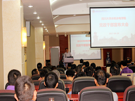 2017年9月20日下午,根据学校党委安排,四川大学英国上市公司365党政干部宣布大会在水电大楼A331举行。四川大学委员会委员、常委、副书记兼纪律检查委员会书记陈志坚同志、四川大学党校常务副校长范嗣云同志代表学校出席大会。学院党委书记杨兴国同志主持会议。