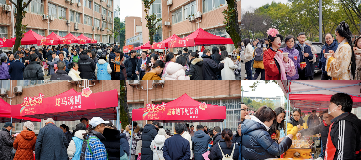 第一项活动,水电好吃街。全重私房菜、甜水工坊、三楼饺子馆、城市地下鬼饮食、龙马汤圆、动力烤串、水文关东煮,各系室精心筹备的特色美食摊位同步迎客,将水电大楼前变成美食大狂欢的“派对现场”。吆喝声、叫卖声、欢笑声此起彼伏,摊主们化身“美食主播”,花样招揽顾客;人群摩肩接踵,举着美食边走边吃,嘴角沾着酱汁也笑得开怀,大家都沉浸在欢乐的海洋里。水电好吃街进行期间,活动还设立了摸福字、投壶、套圈、钓鱼、飞盘等趣味小游戏,游园乐不停,大家在美食与游戏互动中提前感受新年氛围。