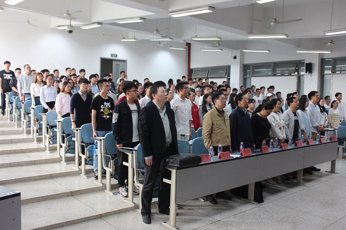 (注:各领导、嘉宾与全体同学齐唱国歌)