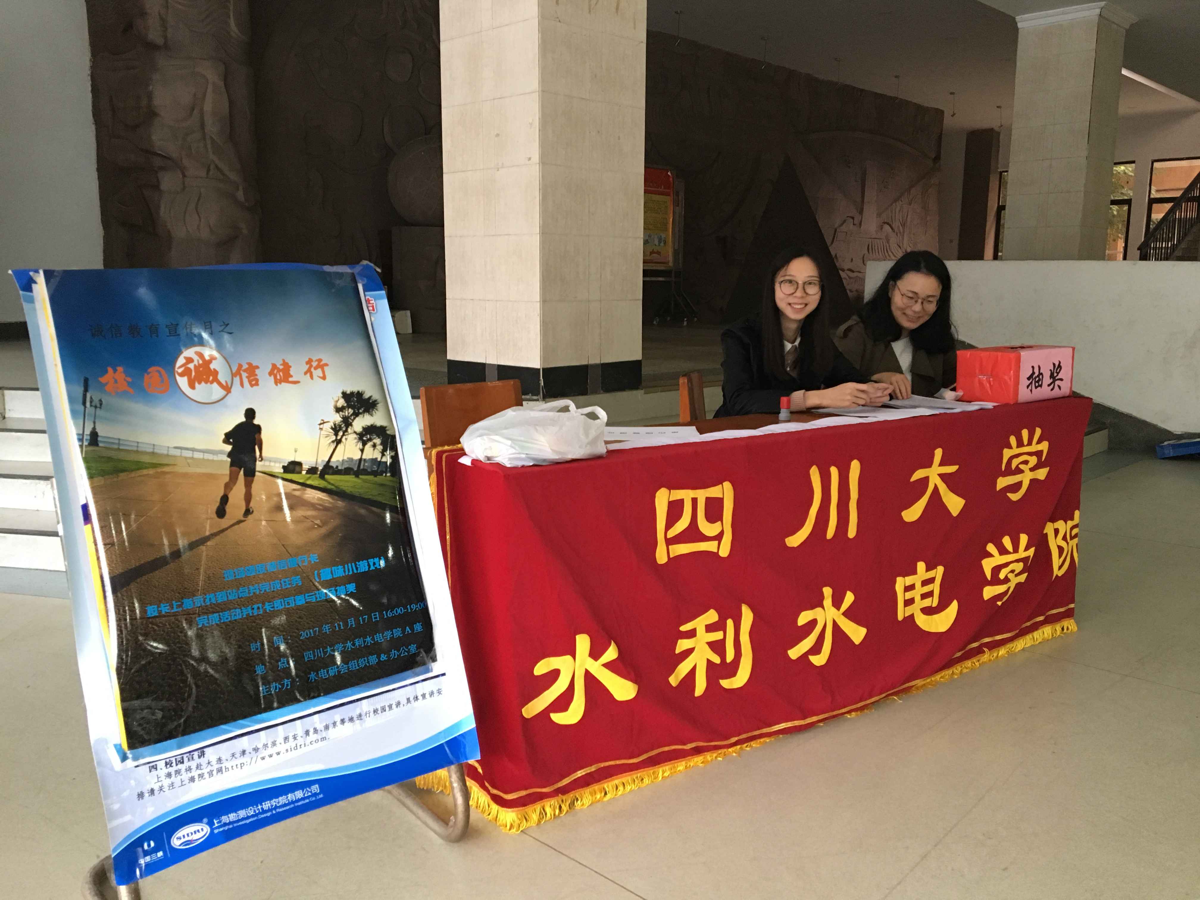 本次活动以定向打卡的方式开展,通过在四川大学望江校区设置的4个站点,以游戏的方式让同学们更加了解诚信和十九大的相关知识。千里之行,始于足下,以诚为主,以动为辅。
