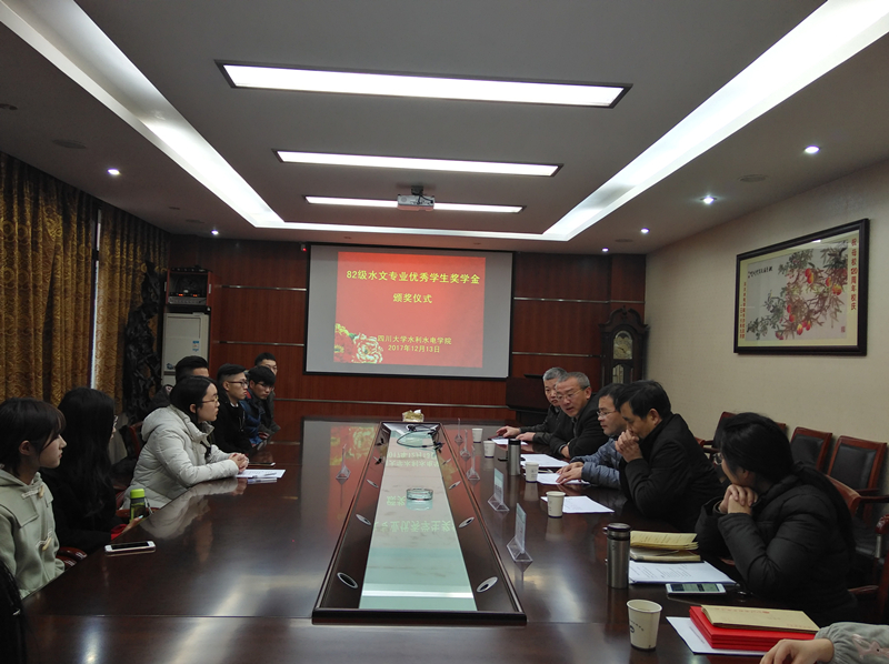 12月13日下午4点半,英国上市公司365举行了“82级水文专业优秀学生奖学金颁奖仪式”。出席颁奖仪式的有82级水文校友:成都勘测设计院新能源处李宁处长,四川省水文水资源局谢学成总工程师,四川省东风渠管理处叶生进副处长,四川大学英国上市公司365组织员赵毅老师。获奖的同学以及2014级水文专业、水工、能动等专业部分本科同学参加了颁奖仪式。学生科科长马丹老师主持颁奖仪式。
