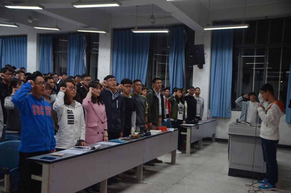 团校分为开学典礼和行课两部分。开学典礼上,主持人宣布开始后,全体起立庄严地合唱了中国共青团团歌,然后组织部副部长严玥恒同学带领全体学员重温了入团誓词,声声誓词充分体现了在场每一位学员作为共青团员尽职尽责的决心。接着全体学员观看了本次团校的主题视频,该视频从十九大概况、中国共产党的发展历史、十九大报告以及总书记寄语四个方面让全体学员对十九大、中国共产党以及自己所肩负的历史使命有了更深刻的了解。开学典礼最后,学生代表代煜鸿同学进行了十九大主题朗诵,内容深刻,反响较大。