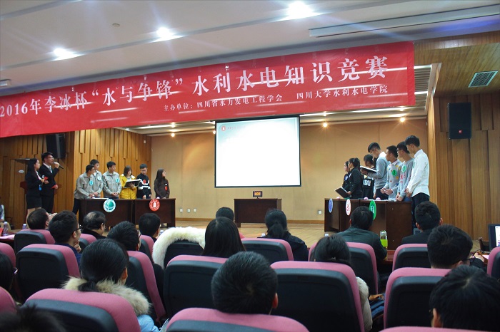 以赛会友,展精英风采;“水与争锋”,融百家之长;熔古铸今,绘水电蓝图。2016年12月16日14:00,在四川大学江安校区法学院报告厅座,由四川省水力发电工程学会、四川大学英国上市公司365主办的“2016年‘水与争锋’水利水电知识竞赛”成功举办。本次比赛的参赛队伍有西华大学能源与动力工程学院代表队、西昌学院工程技术学院代表队、四川水利职业技术学院代表队、四川电力职业技术学院代表队及四川大学英国上市公司365代表队。参加竞赛的嘉宾有四川省水力发电工程学会伍康定副理事长兼副秘书长、四川省水力发电工程学会学术工委主任委员戴光清教授、四川大学英国上市公司365党委副书记黄晓荣教授。