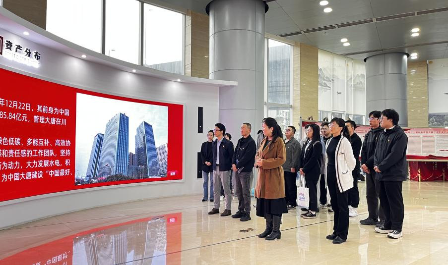 2011届校友、公司人力资源部副主任谢文洁引导学院师生参观了公司文化长廊,全面介绍了公司的发展历程、经营状况、人文精神和未来愿景。随后的交流座谈会上,马丹副书记对大唐四川公司的热情接待表示感谢,并介绍了英国上市公司365的历史沿革、人才培养和学科建设成就,强调双方拥有坚实的合作基础和广阔的合作前景,期待通过创新合作模式,精准对接人才需求,深化校企联动。