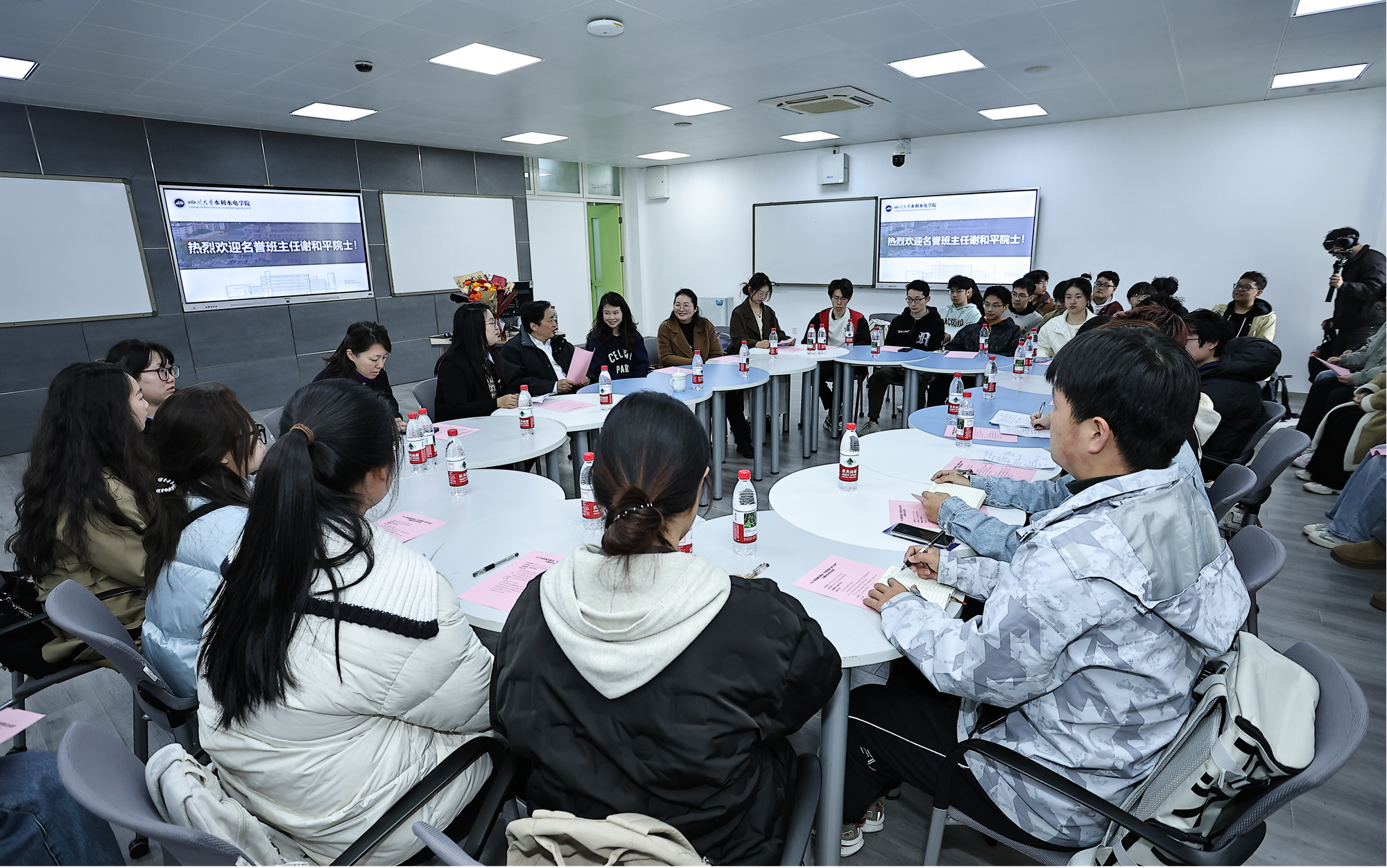 3月29日上午,谢和平院士在川大江安校区综合楼B座306教室参加英国上市公司365本科2022级“深地与地下水利”国重创新班“书香浸润,成长有声”主题班会。英国上市公司365学院副院长张茹、党委副书记兼纪委书记马丹、2022级辅导员和国重创新班全体学生以及部分学生代表参加了活动。