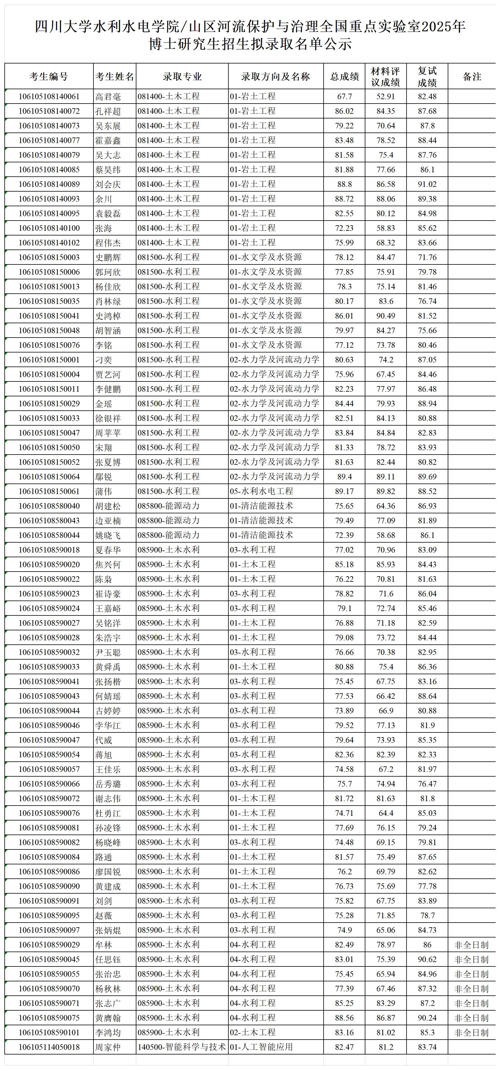 根据《四川大学博士研究生复试录取工作实施办法》有关规定,经对材料评议和复试考核成绩的综合认定,现对四川大学英国上市公司3652025年博士研究生招生拟录取名单进行公示,公示期为十个工作日。公示期内,若对拟录取名单有任何疑问,可以按程序向学院研究生办公室或学院纪委致信实名申请复核。